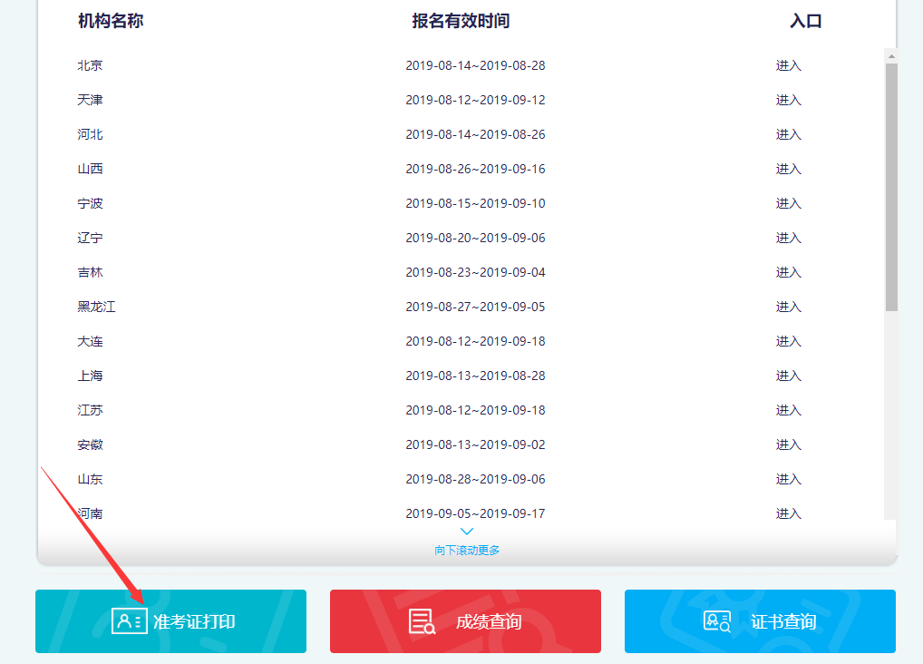 第三步:進入報名入口頁面后,點擊準(zhǔn)考證打印。